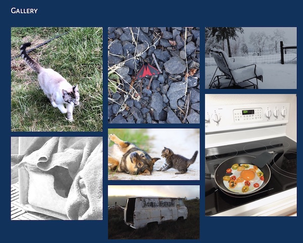 You can display the gallery in either a Thumbs or a Collage layout. Here's an example of Thumbs layout, in which image thumbnails are presented in a grid.