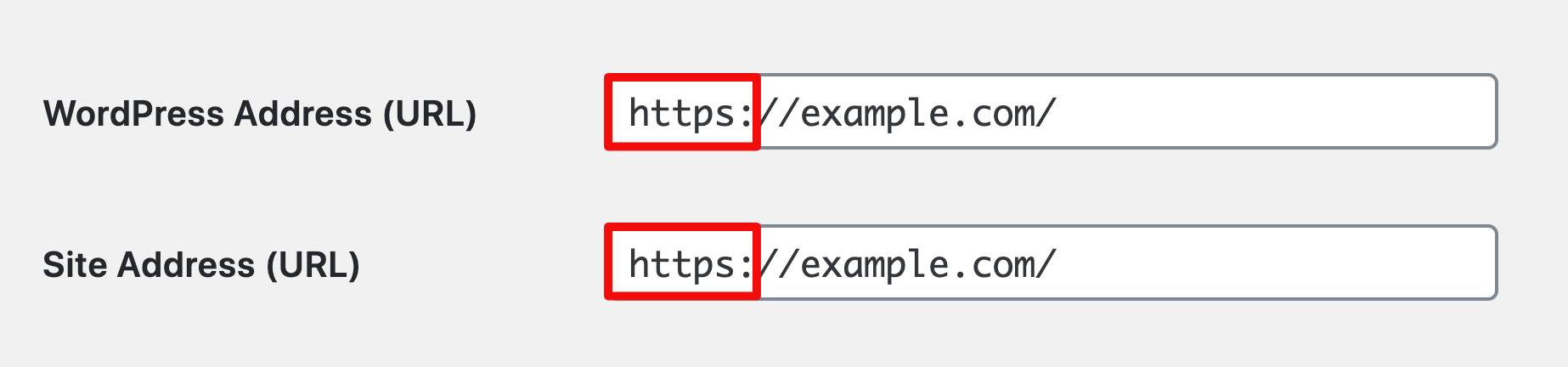then make sure that you have also set both URLs in Settings > General to use https:, as shown in the following screenshot.